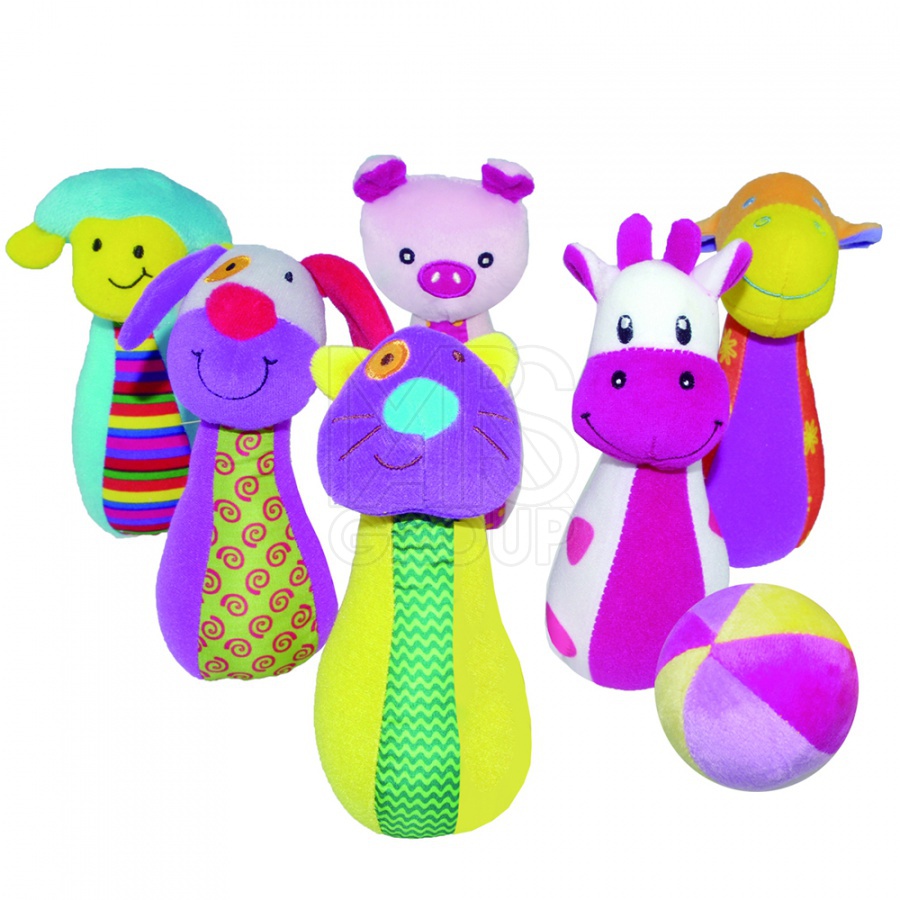 Набор из 6 предметов: 6 кеглей с веселыми животными и 1 мячик