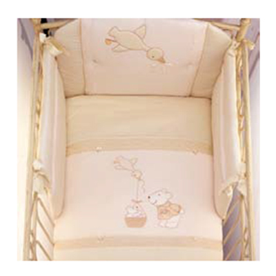 Бампер Предохраняет от ушибов о стенку кроватки. Простынка удобная, на резинке, не позволит лишним складкам воздействовать на кожу ребенка. Дизайн Изысканный, высокое качество пошива, украшен вышивкой